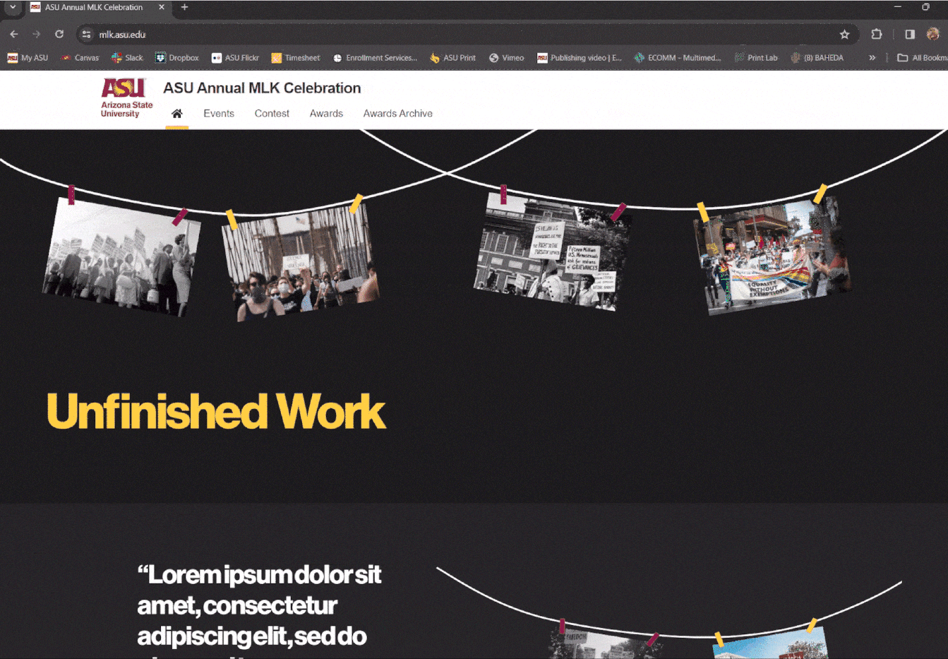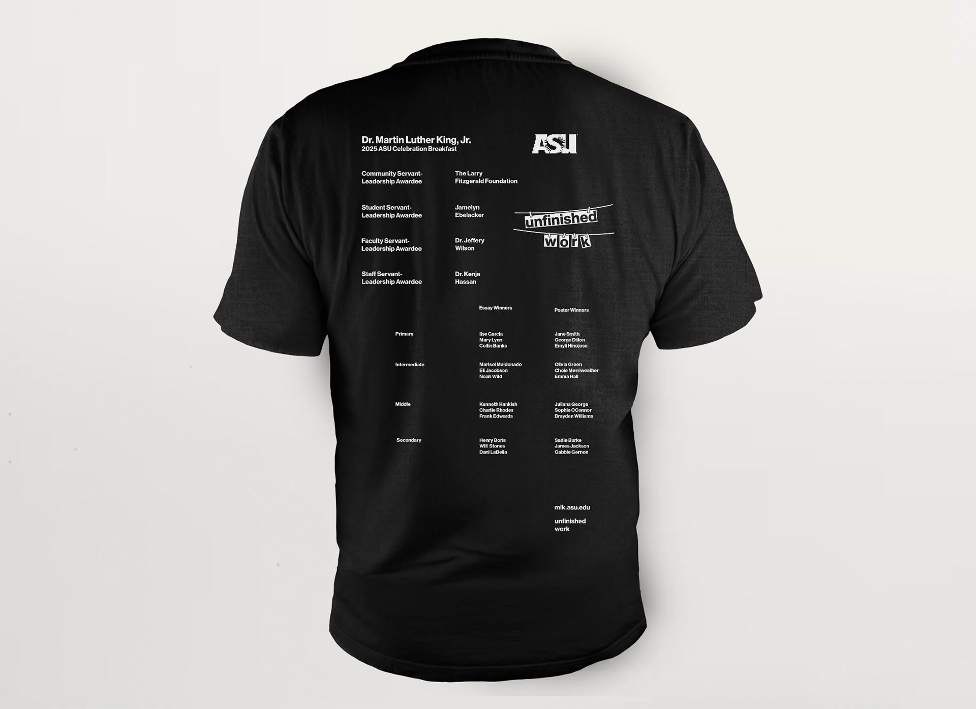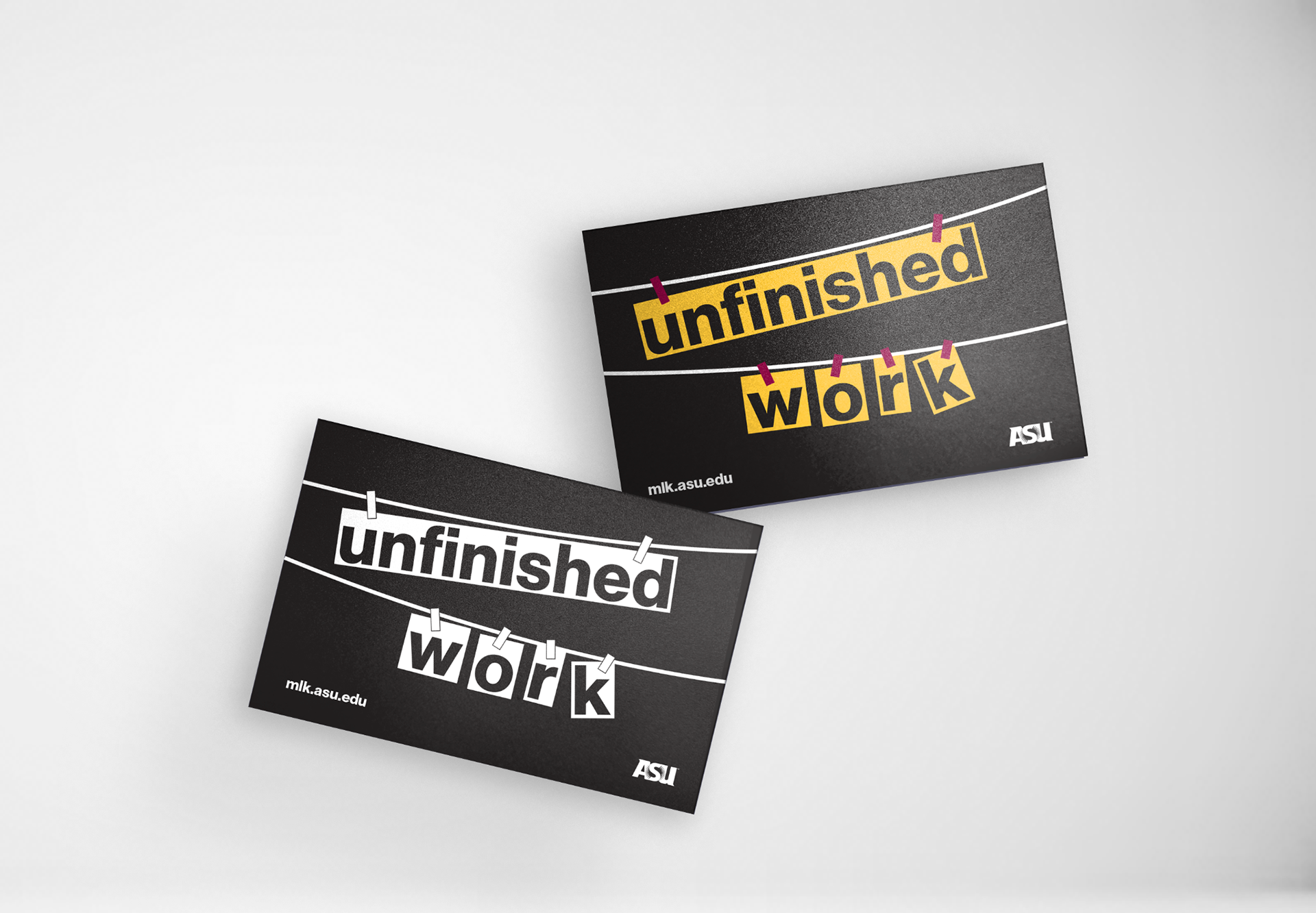 Working with my team, Baheda, I collaborated with 5 others to work on a campaign for ASU’s Martin Luther King Jr Committee for the following year. We created a series of collateral materials to showcase our tagline "Unfinished Work". We shortlisted as finalists and presented our work to the committee that would accompany the various events they host through ASU and their campuses.